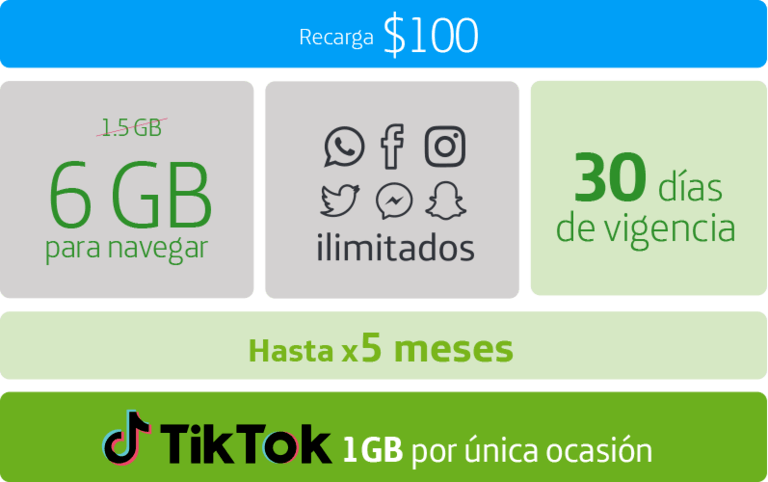 Cámbiate y disfruta de 30 días de redes sociales ilimitadas + 6 GB para navegar por $100 pesos